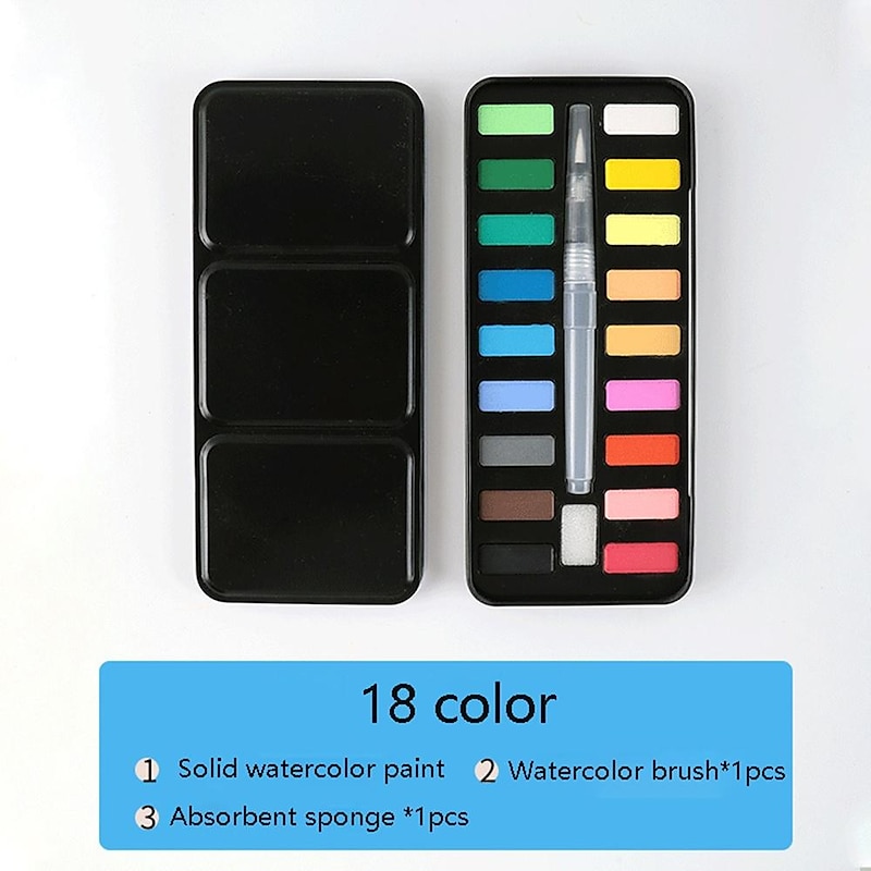 12/18/24Colors Solid Watercolor Paint Set With Paintbrush Portable Watercolor Pigment Set Art Supplies 18