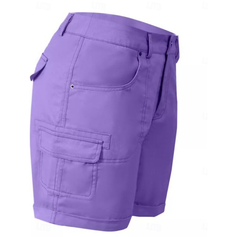 More information about Women's Chinos Shorts Basic Casual Short Medium Waist Plain Pocket Comfort Outdoor Micro-elastic Vacation Street Daily Black Purple Green Khaki Summer Regular Fit