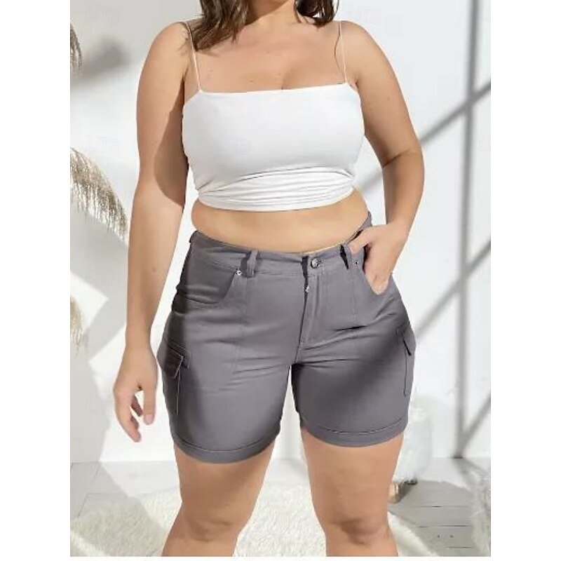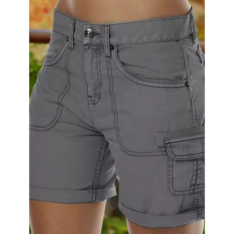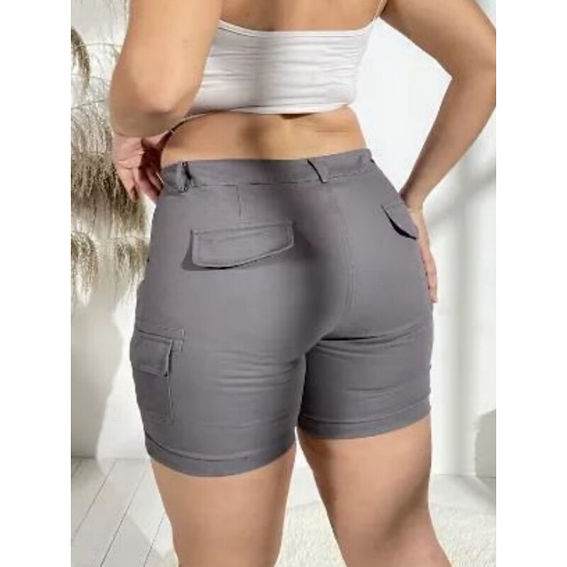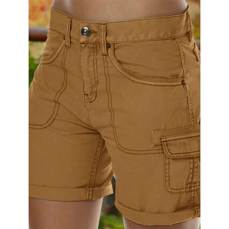 must-have ! Women's Chinos Shorts Basic Casual Short Medium Waist Plain Pocket Comfort Outdoor Micro-elastic Vacation Street Daily Black Purple Green Khaki Summer Regular Fit