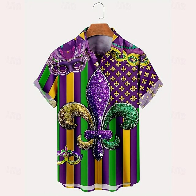 Why Choose Carnival Men's Mask Casual Shirt Button Up Shirt Short Sleeve Funny Gift Causal Casual Summer Spring Turndown Button Up Purple?