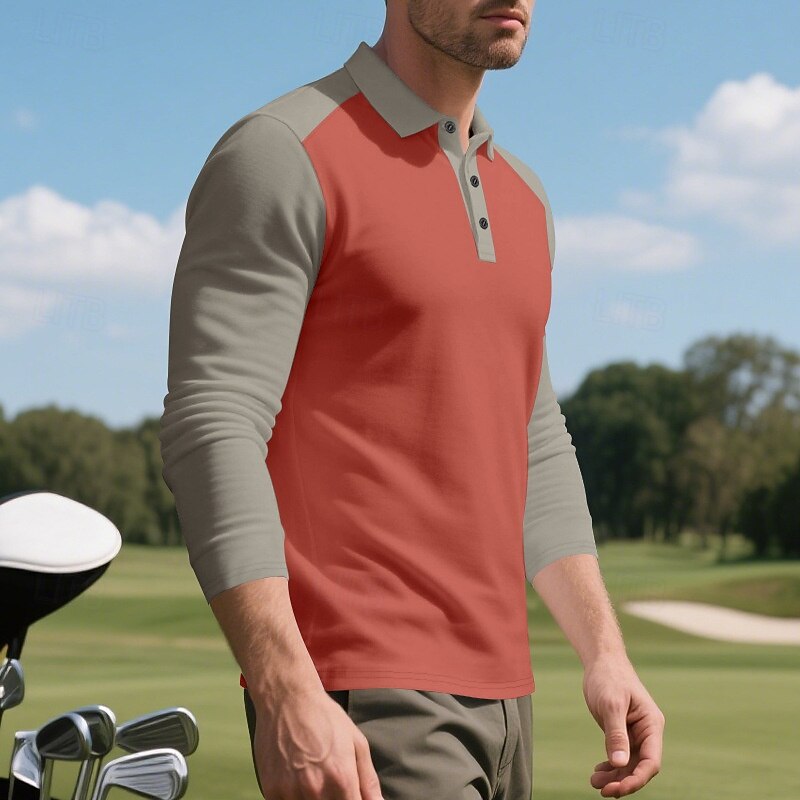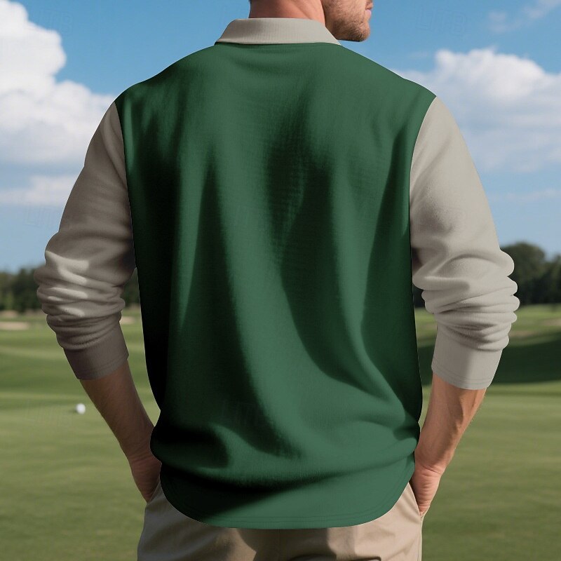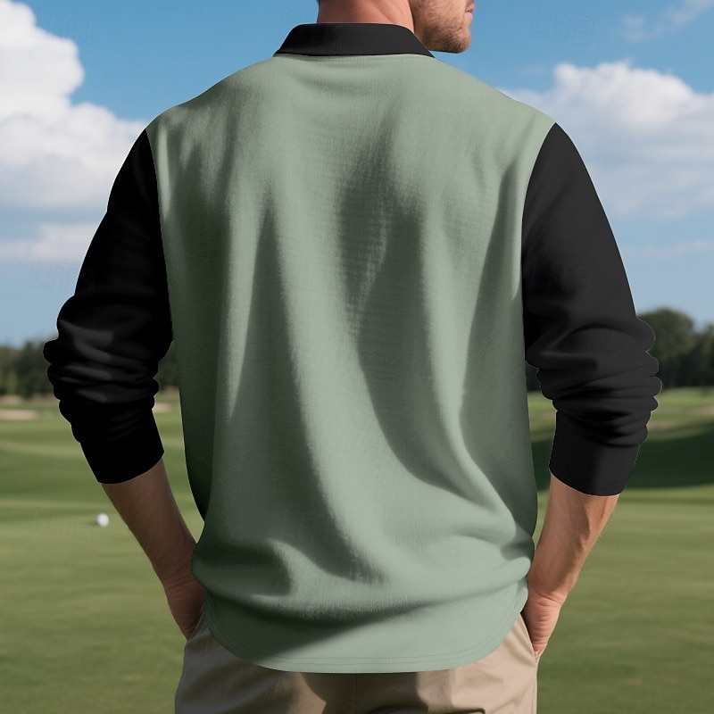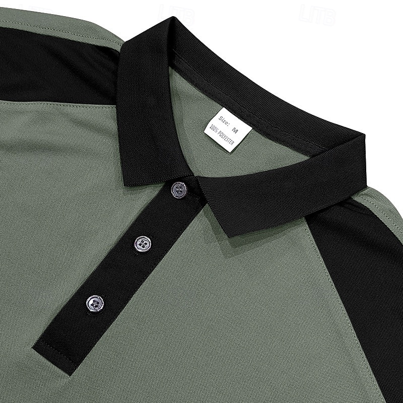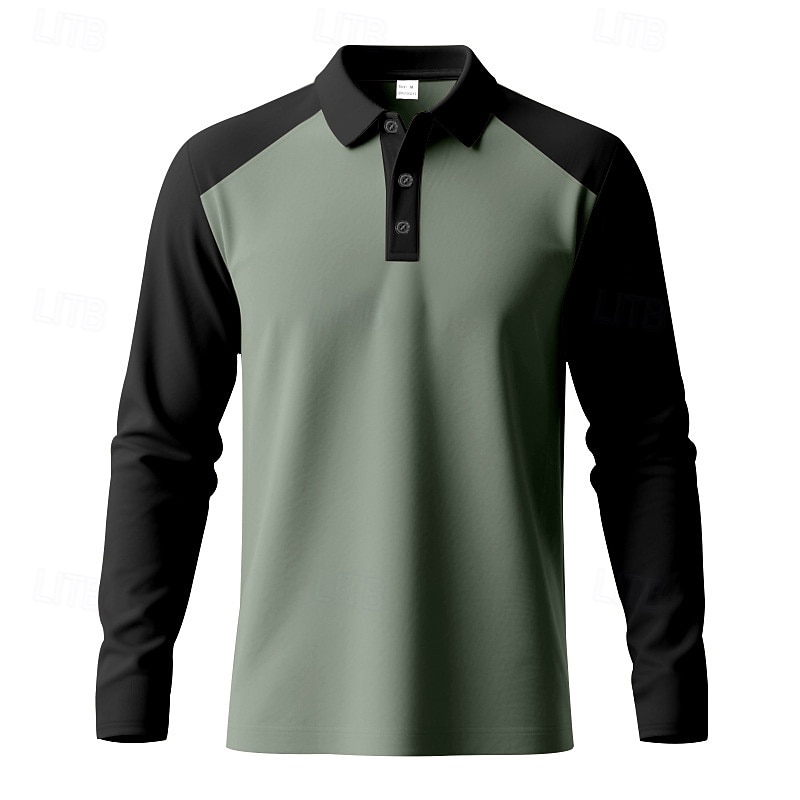 More information about Men's Golf Shirt Golf Polos Shirts Work Casual Lapel Long Sleeve Basic latest Color Block Patchwork Buttons Spring Fall Regular Fit Depression Green Black Khaki Army Green Golf Shirt
