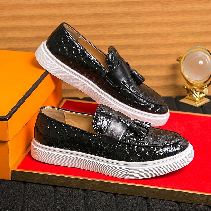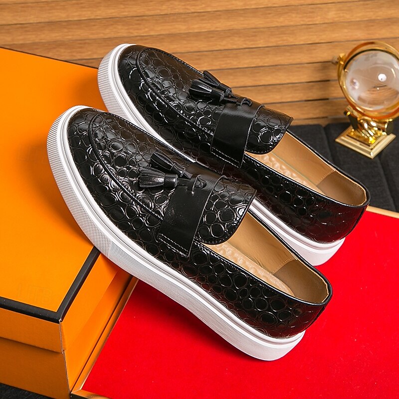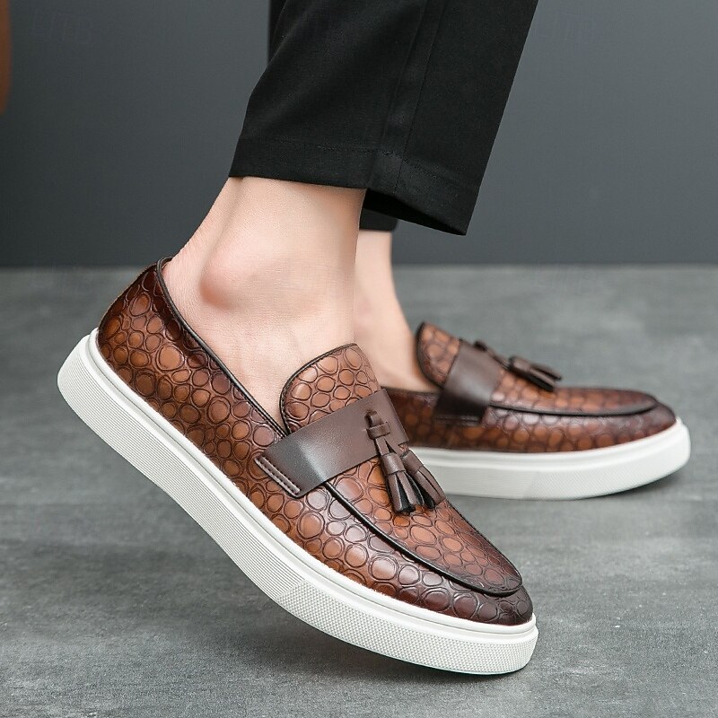 This Men's Brown Crocodile Pattern Loafers with Tassels – Luxury Slip-On Dress Shoes for Business, Evening Parties and Formal Occasions combines elegant design with practical functionality. Every detail has been carefully considered to ensure you get the premier possible experience. The premium construction means this product will serve you well for years to come.