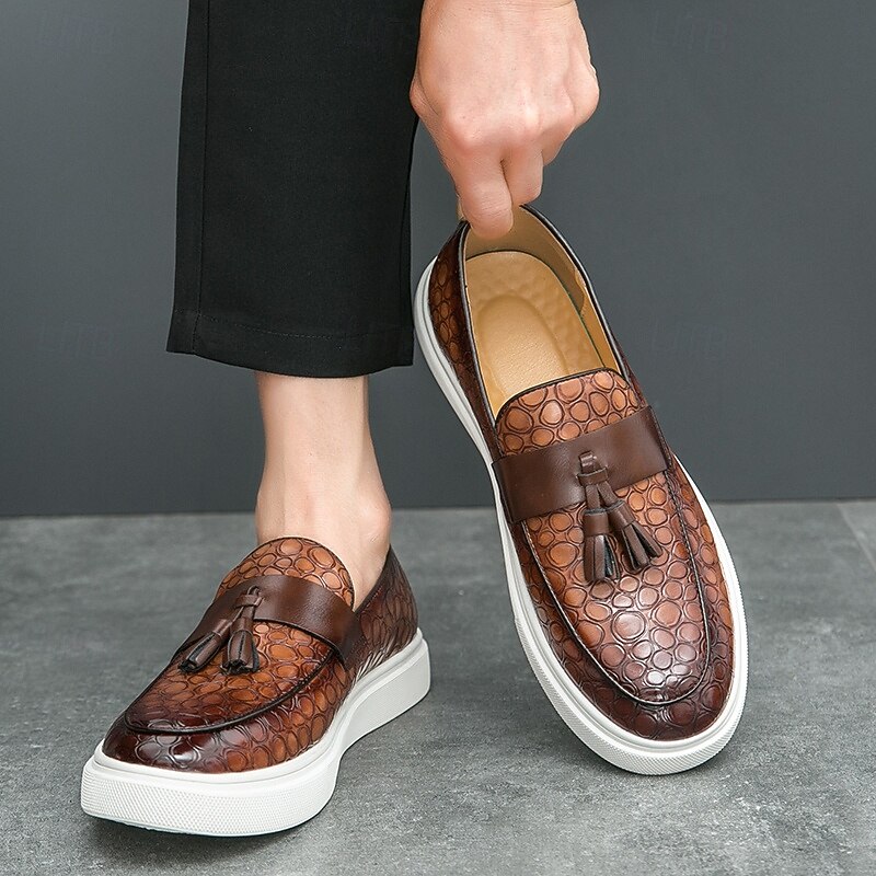 Why Choose Men's Brown Crocodile Pattern Loafers with Tassels – Luxury Slip-On Dress Shoes for Business, Evening Parties and Formal Occasions?