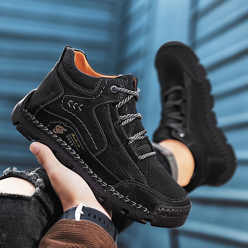 must-have ! Men's Brown Leather Casual Lace-Up Ankle Boots – solid Stitching and Rugged Sole for Outdoor and Everyday Wear