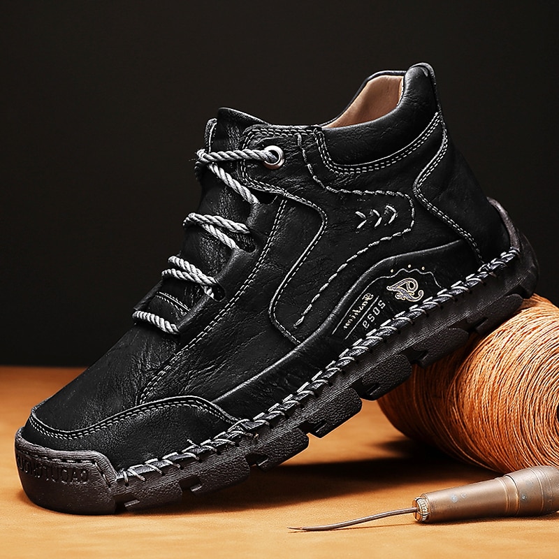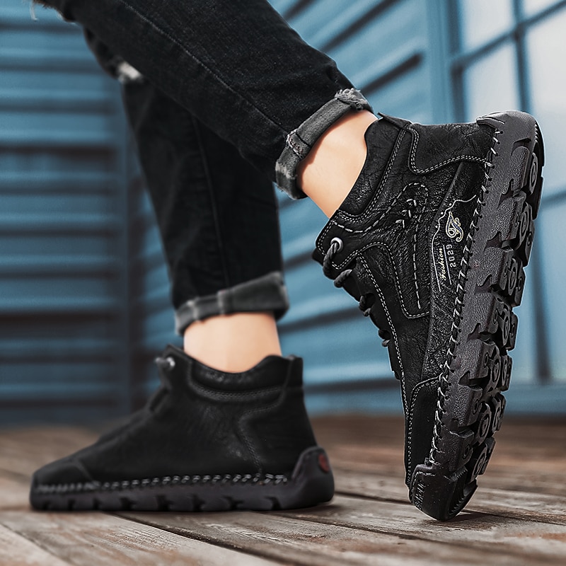 More information about Men's Brown Leather Casual Lace-Up Ankle Boots – robust Stitching and Rugged Sole for Outdoor and Everyday Wear