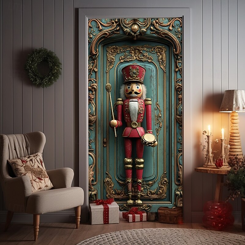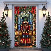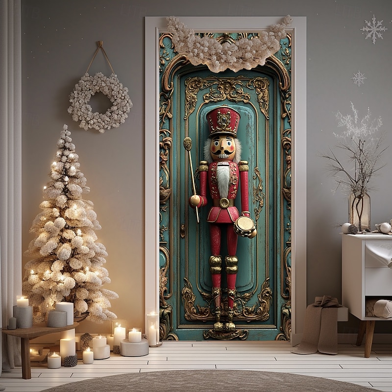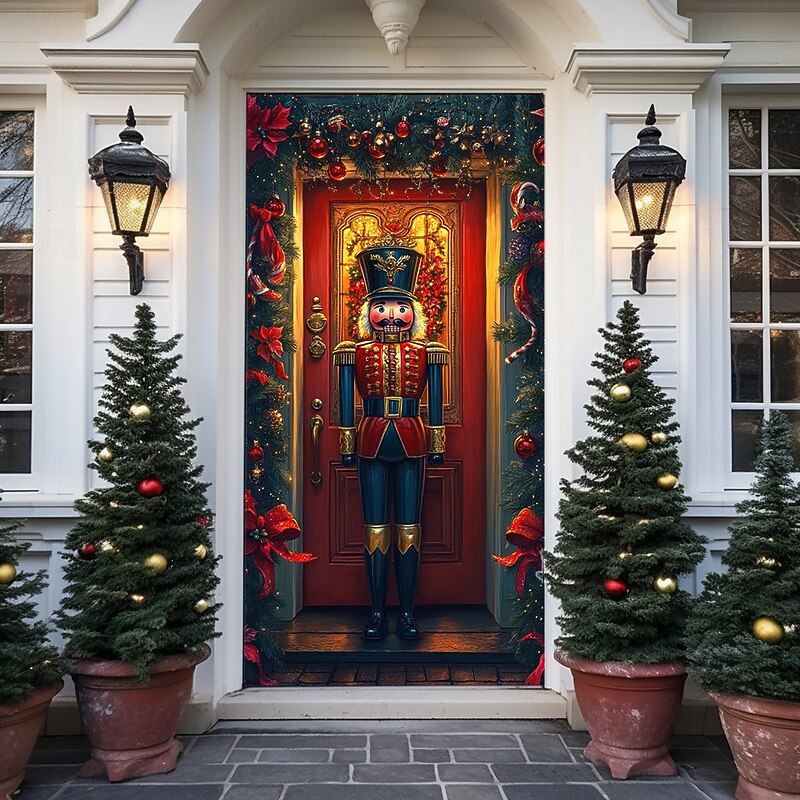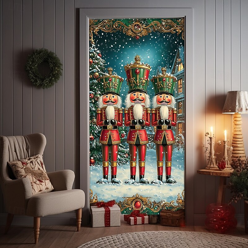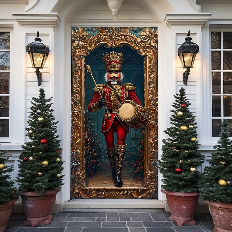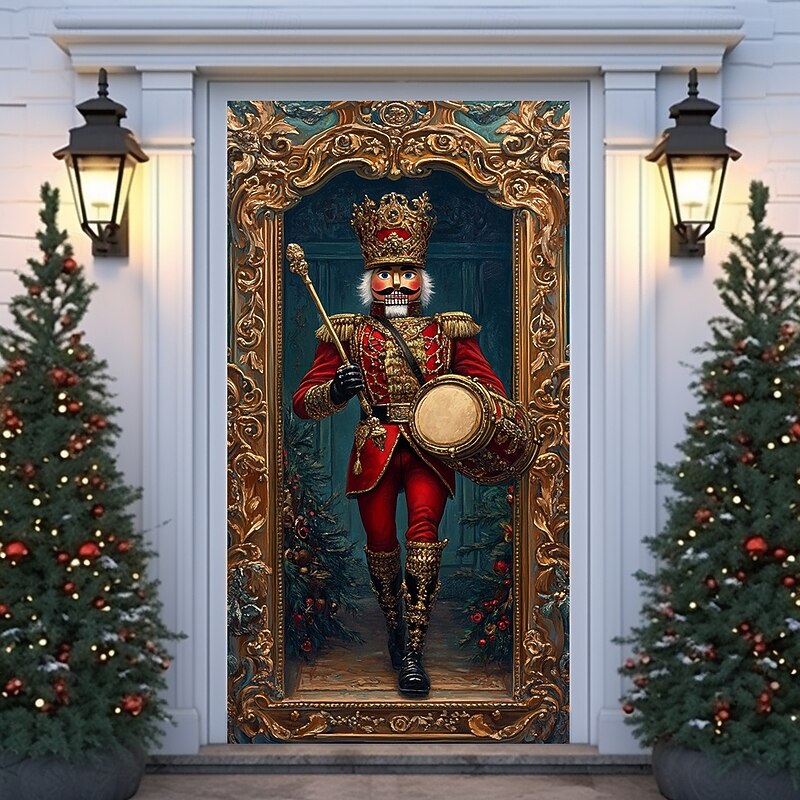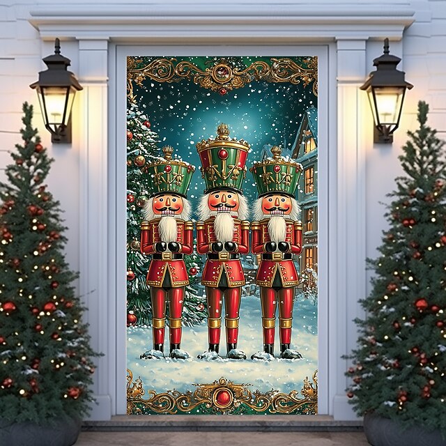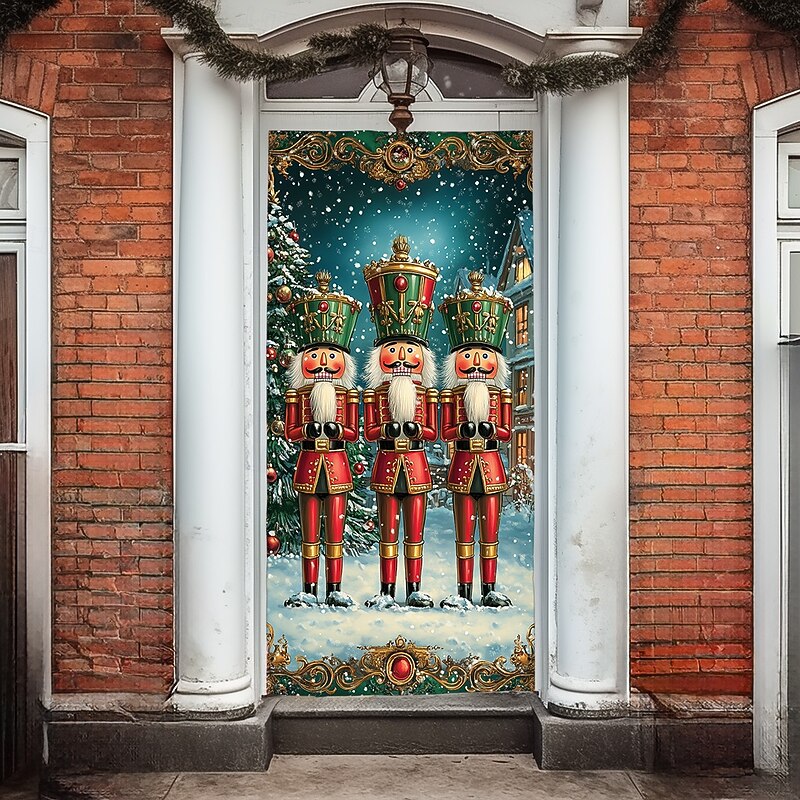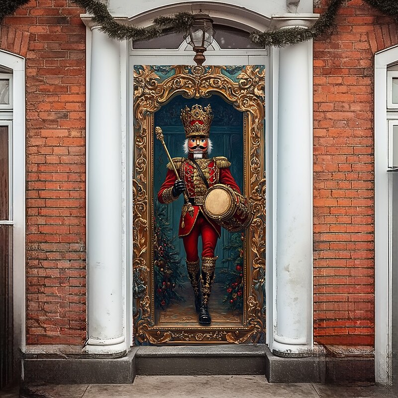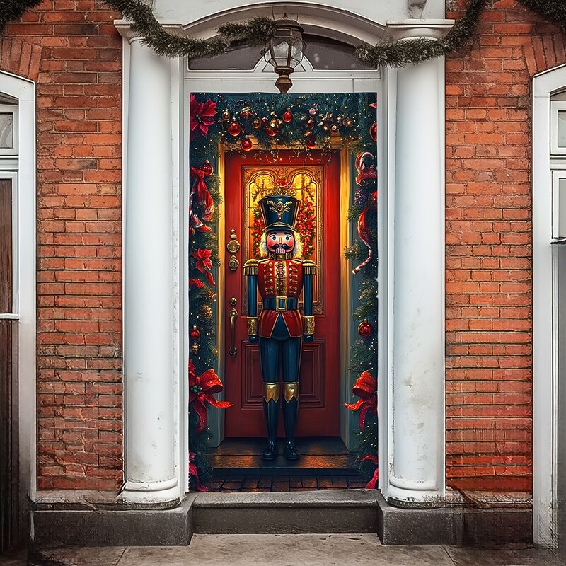 Christmas Door Decorations Door Covers Xmas Nutcracker Door Tapestry Door Curtain Decoration Backdrop Indoor/Outdoor Door Banner for Front Door Farmhouse Holiday Party Decor Supplies