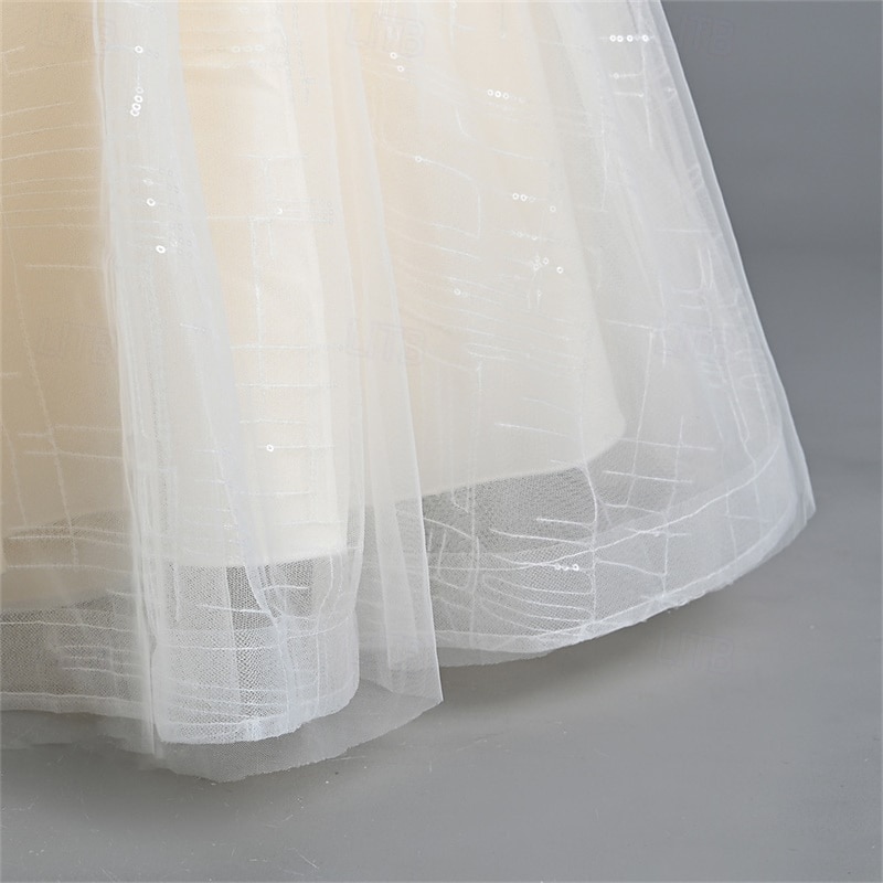 More information about Kids Girls' Flower Girl Dress Party Dress Solid Color Sequin Short Sleeve Performance Wedding Party Mesh Patchwork Elegant Sweet Polyester Maxi Party Dress Swing Dress Tulle Dress Spring Fall Winter