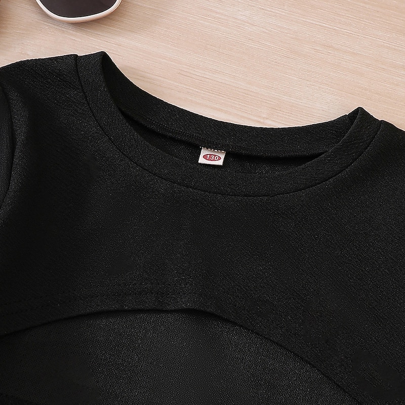 2 Pieces Kids Girls' Color Block Dress Suits Set Long Sleeve Adorable Performance Cotton 7-13 Years Spring Black 19