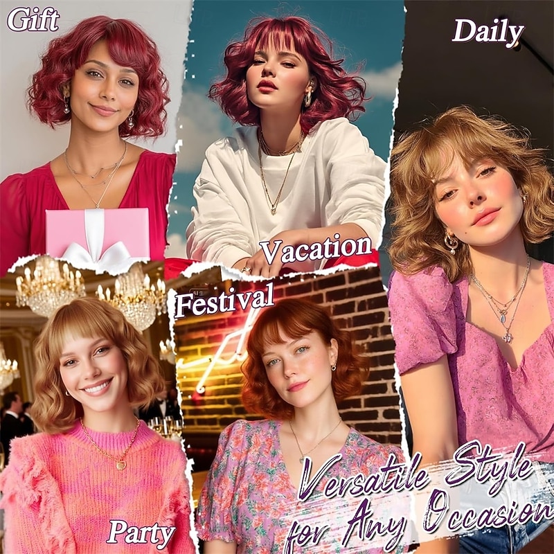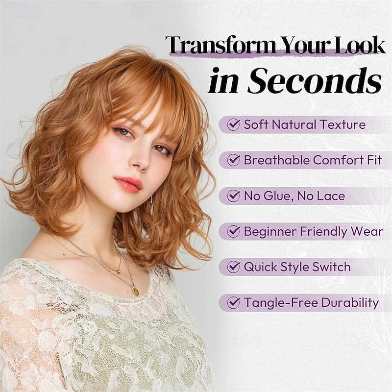 $21.99 - Short Wavy Golden Ginger Wig with Bangs - Short Golden Ginger Bob Wigs for Women - Curly Wavy Textured French Bob Wig with Bangs Soft Synthetic Natural Looking Face-Framing Daily 2025. Shop for cheap Party Wigs online? Buy at lightinthebox.com on sale today!