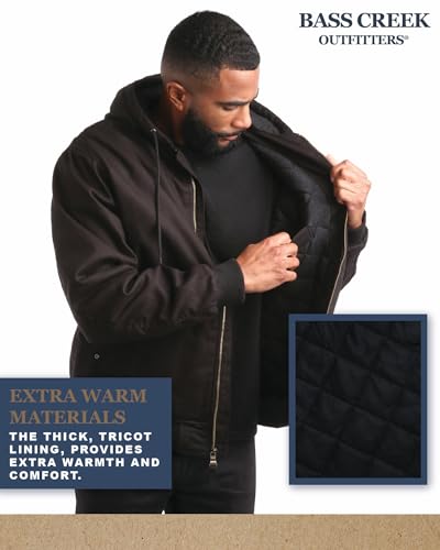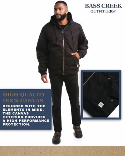 must-have ! Bass Creek Outfitters Mens Canvas Jacket - Quilted Lining & Ribbed Cuff Sleeves Tricot Duck Work Jackets for Men (M-XXL)