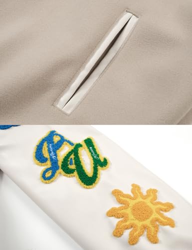 Fabric type: 100% PolyesterCare instructions: Machine WashOrigin: ImportedMens varsity letterman jacket Features: Long sleeve,baseball collar, button front, pockets, color block, vintage streetwear coats, letter print, button front, streetwear aesthetic, winter clothes,relaxed fit, streetwear jacketUnisex Bomber Jackets for Adults Fabric has some stretch,and it's soft and comfortable,suitable for spring, autumn, and winter wearUnisex bomber jackets perfect for daily wear, office, music festivals, football, motorcycle, outdoor, street, holiday, weekend, travel, sport, dating, outerwear, etcClassic Varsity Style: Inspired by football varsity jacket, this men's baseball jacket features snap button closure, ribbed collar, cuffs, and hem for a timeless look. Perfect for everyday use. first-class materials and excellent craftsmanship ensure long-lasting durability.