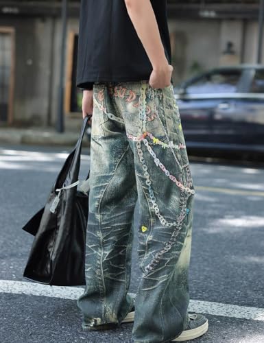 • Features: Wide leg streetwear 90s jeans are fashion - forward wide-leg and slanted button fly design, these jeans move with you—whether you're skateboarding, dancing, or lounging
