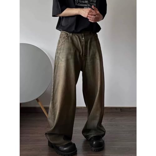 must-have ! High Street Retro Unisex Pants with Neutral Oil Wax Coating Distressed Jeans