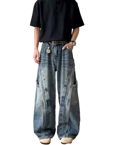 More information about Baggy Barrel Jeans for Men Wide Leg Cargo Y2k Pants Loose Fit Hip Hop Jeans Denim Oversized Pants Straight Trousers