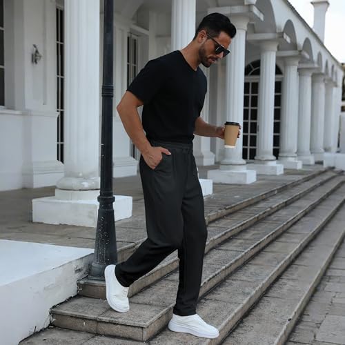 must-have ! FZNHQL Men's Fashion Casual Lounge Pants with Elastic Waist Drawstring Trendy Textured Fabric Athletic Trousers and Pockets