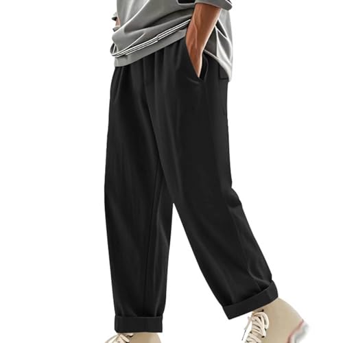 must-have ! Men's Linen Pants Elastic Waist Lightweight Drawstring Pants Casual Poose Fit Summer Vacation Trousers with Pockets