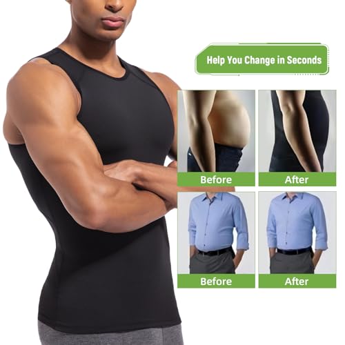 Fabric type: 85% Polyester, 15% SpandexOrigin: ImportedNeck style: Crew NeckSleeve type: Sleeveless【cushy 4D FABRIC】This mens compression shirt is made of 85% polyester and 15% spandex, the proprietary 4D stretch compression fabric provides unmatched stretch and recovery, very comfortable, you can wear it all day.【CHEST COMPRESSION】 Our gynecomastia compression shirt has two layers of high-stretch and breathable fabric on the chest, if you have excess fat on your chest or you have Man Boobs, it can effectively shape your chest, reduce the appearance of the gynecomastia, hide Man Boobs .【TUMMY CONTROL】 As we know, many people have beer belly or big belly caused by obesity. Don’t Worry, the abdominal area of the tank top is also made of two layers of highly elastic and breathable fabric, it can help you reduce your belly immediately.【BACK SUPPORT】 The back area of this garment is ergonomically designed, which helps improve your posture without compromising comfort and flexibility, it can make you look more upright and handsome.【SUITABLE ALL OCCASIONS】 The multifunctional compression shirt isn't just for workout, fitness, running, cycling, football, basketball and other sports, it's great for dating, party, working. The slimming design of this shirt allows you to wear it under all types of clothing, such as t-shirts, polos, dress shirts, suits. Perfect for everyday use. premium materials and excellent craftsmanship ensure long-lasting durability.