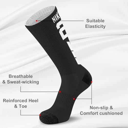 • supreme PERFORMANCE SOCKS! Thick reinforced toe and heel, non-slip and shock-absorbing curve design, lightweight and breathable. Suitable elasticity top firmly wraps around your mid-calf. Whether you're competing or training, our athletic team socks are practical and contemporary basketball or football accessories.