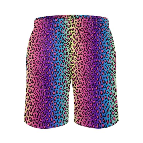 must-have ! Bright Leopard Rainbow Print Mens Swim Trunks, hasty Dry Swim Shorts with Mesh Lining Swimwear Bathing Suits