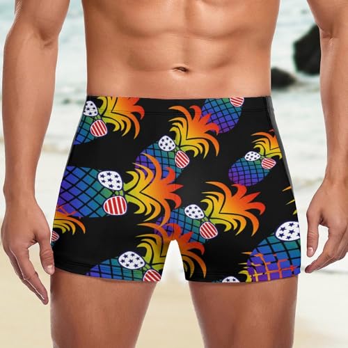 USA Flag Pineapple Men's Square Leg Swim Briefs Athletic Swim Trunk Beach Swimwear Bathing Suit
