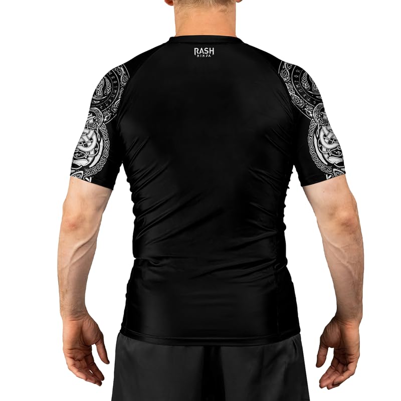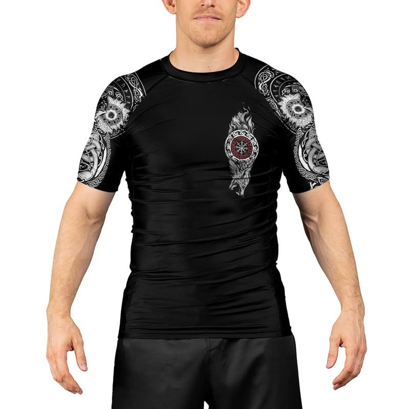 must-have ! Viking Tatoo Men's Short Sleeve Rash Guard Baselayer Compression Shirt for BJJ MMA Jiu Jitsu Wrestling Training