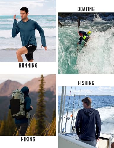 Fabric type: 95% Polyester, 5% SpandexCare instructions: Machine WashOrigin: ImportedClosure type: Pull OnUPF 50+ Protection--- Our men's hoodie shirts with thumb holes design offer superior sun protection with a UPF 50+ rating, ensuring your skin is protected from harmful UV rays while enjoying outdoor activities like fishing, hiking, swimming, running, surfing, and more.Quick-drying & Lightweight--- Made of 95% polyester and 5% spandex, our rash guard is designed to be lightweight, quick-drying, and breathable. It keeps you cool and comfortable during intense workouts or under the sun.Comfortable fit--- Raglan sleeves construction allows for a full range of motion. It features a crew neck and stretchable fabric for easy movement and flexibility, making it perfect for various water or land-based activities.Easy Care--- Flatlock seams and no tag collar minimize friction and offer great comfort. Machine washable.Gifts for Men--- Our rashguard is also perfect for your husband, boyfriend, father, son, brother, or friends. Perfect for everyday use. High quality materials and excellent craftsmanship ensure long-lasting durability.