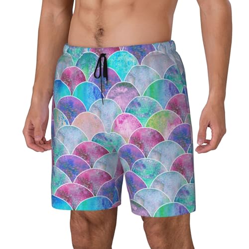 must-have ! Men's Fish Scale Ocean Print hasty-Dry Mesh Swim Trunks Stretch Lining Beach Shorts Surfing Summer Vacations