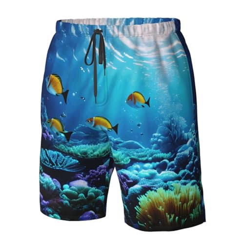 Tranquil Underwater Scenery Print Mens Casual Shorts Drawstring Summer Beach Stretch Shorts Novelty Swimtrunks 1