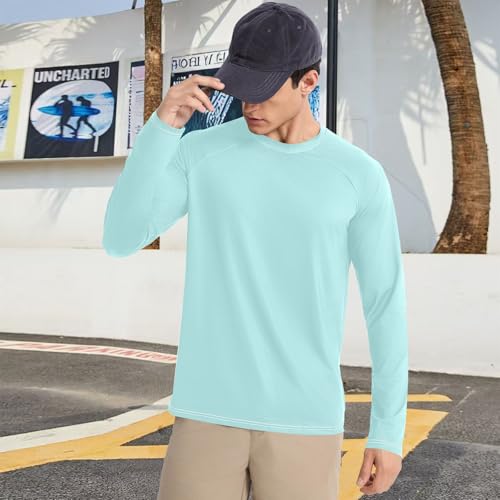 must-have ! Pale Turquoise Blue Men's Rash Guard Shirts Elastic Long Sleeve UV Protective Clothing Outdoors