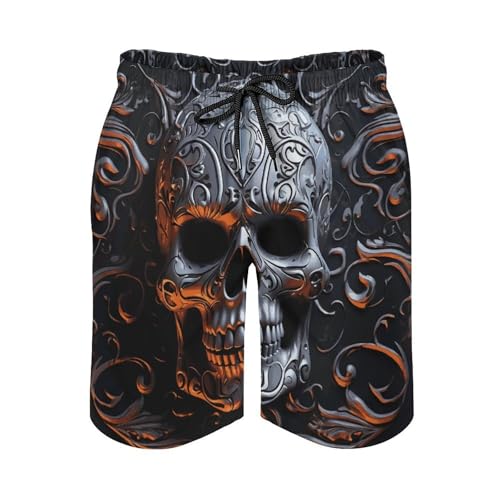 Men's Swim Trunks rapid Dry Board Shorts with Pockets Beach Shorts Cool Skull Graphics Bathing Suits for Men