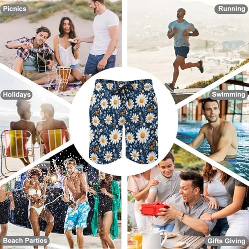 • Multi-Occasion Style: These White Daisy Floral Print mens swimsuits transition easily from water to land. Whether you’re out running, at the gym, or swimming, they perform as swim shorts for men, mens swimsuit, or bathing suit for men. terrific for travel, workouts, or men's bathing suits collections