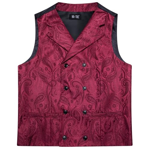 Hi-Tie Mens Silk Paisley Victorian Suit Vests Tie Set Lapel Pin Gold Tie Clip Double Breasted Steampunk Tuxedo Waistcoat 1