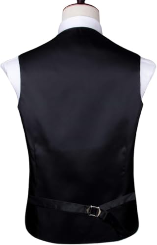 • Exquisite Design:Mens vintage black silk floral Jacquard waistcoat; 19th century victorian double breasted design style;featuring a V-neck with six buttons, two real side pockets;and adjustable back straps