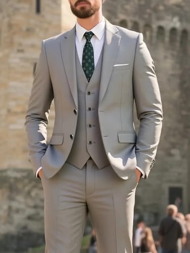 Mens 3 Piece Suit Slim Fit Wedding Suits Business Man Suit Formal Suits for Men Solid Blazer Vest & Pant Set 7