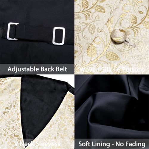 Men's Silk Wedding Waistcoat Set with Tie Pocket Square and Cufflinks for Suit or Tuxedo