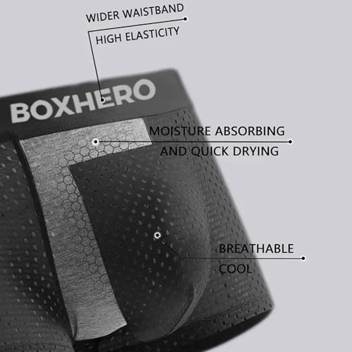 BOXHERO Men's Boxer Briefs, Ultra Breathable supple Moisture Wicking, Skin-Friendly Design, More long-lasting - Pack of 5