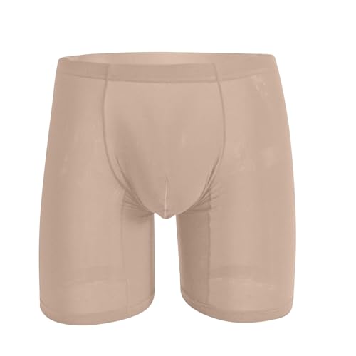 must-have ! Pouch-Enhancing Boxer Briefs for Men Athletic Anti-Chafe Long Leg Boxers Sexy Solid Color Ball Pouch Underwear