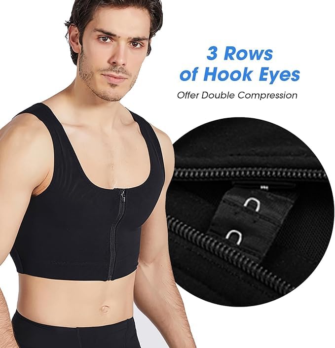 Fabric type: 70% Nylon &30% SpandexCare instructions: Machine WashOrigin: ImportedClosure type: Pull On✅【Enhanced Chest Binding】 High compression fabric provides high resistance to flatten the chest safely and effectively. It is meant to hide the appearance of fat in the chest as well as compress the gynecomastia gland making you more confident in a t-shirt✅【Help Speed Post Top Surgery Recovery】 Gentle support and compression of mens compression vest helps to boost blood flow and allow your chest muscles to heal faster. Letting you go about your busy day with less pain & more confidence✅【Improve Your Back Posture】The chest compression vest for men features a double-layer back cross design that enhances its corrective function, providing effective back support and posture correction. Our gynecomastia shirts for men are designed to reduce excess back fat, giving you a more flattering figure. You can improve your posture and bad habits at home, during exercise, or at the office, and achieve visible results discreetly✅【Most cushy & Breathable】Your compression vest can be worn over or discreetly under your clothing. Breathable materials make sure your chest are supported all day or night to allow you to finally get a good nights sleep✅【Suitable For All Occasions】 Our gynecomastia chest vest is so comfortable to wear even for a long time, so you can wear them comfortably all day long. You can wear this men's tight compression shirt for gym, running, fitness, weightlifting, cycling and other sports, but also for party, dating, home workouts to help you get rid of excess fat on your back and around your chest Perfect for everyday use. premium materials and excellent craftsmanship ensure long-lasting durability.