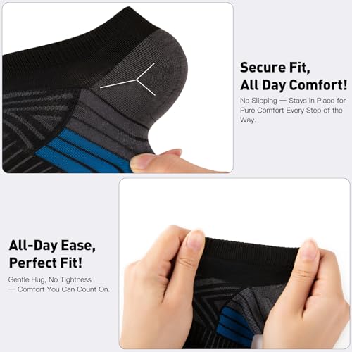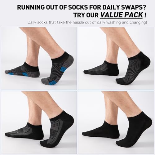Fabric type: Polyester&SpandexCare instructions: Machine WashOrigin: ImportedFit type: Regular[4 Styles in a 30-Pair Bulk Pack] - This pack includes 30 pairs of low cut ankle socks in three styles: classic solid black, sporty accents, and contemporary stripes. These thin socks are versatile and suitable for work, casual outings, or sports. Ideal for anyone seeking bulk socks for extended use.[Fits Shoe Sizes 8-11] - Designed for universal comfort, these ankle socks for men and fit shoe sizes 8-11 (sock size 10-13). Whether you're looking for mens socks size 9-12 or ’s athletic socks, this set ensures a snug, comfortable fit.[Breathable and Lightweight for Warm Weather] - Made from soft, breathable materials, these thin black no show socks keep your feet cool and dry during spring, summer, and fall. Ideal for activities like running, hiking, or lounging, these are the perfect socks for men and with active lifestyles.[Durable, Sweat-Wicking, and Easy to Wash] - These low cut socks are crafted for long-lasting wear, with reinforced stitching to resist tears. They’re machine washable (cold water recommended) and maintain their shape over time. A great choice for those seeking durable socks that won’t shrink.[Perfect for Sharing or Team Events] - This bulk pack of socks is ideal for families, friends, team sports, charity donations, or gifting. Suitable for various occasions, such as sports events, casual gatherings, or daily wear. These versatile mens black socks make a thoughtful gift. Perfect for everyday use. premium materials and excellent craftsmanship ensure long-lasting durability.