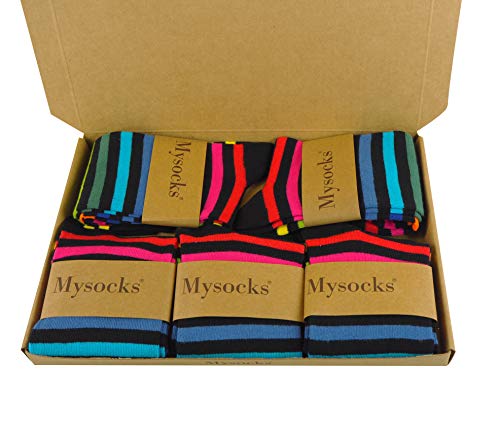 • Mysocks Men Socks Stripe Dark Rainbow 5 Pairs Cotton Rich Size 7-11
