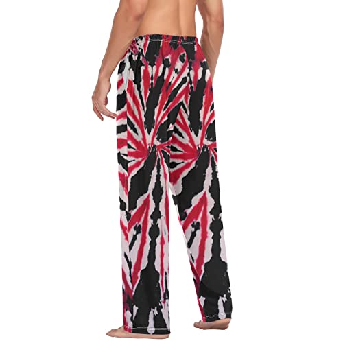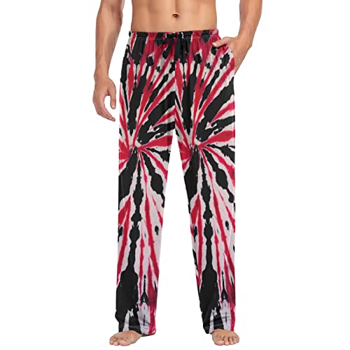 Pajama Pants Mens Lounge Pants Super silky Pajama Bottoms with Pockets,Tie Dye Red and Black