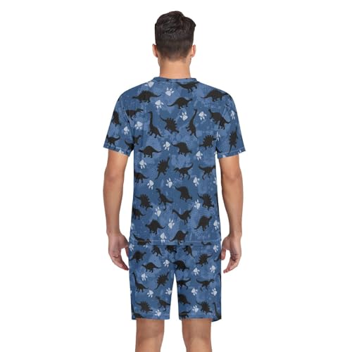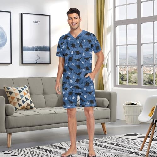 Men's Short Sleeve Pajama Set Cartoon Dinosaur Summer Pjs Set 2 Piece Loungewear Sleepwear with Pockets 1