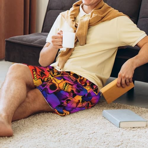 Skull Print Men’s Sleep Shorts Bottoms Soft Comfy Pajama Wear Pants With Drawstring Pockets 6