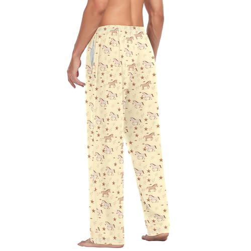 Mens Cotton Pajama Pants Sleep Lounge Pj Bottoms Sleepwear with Pockets Drawstring S Little Horse Star 1