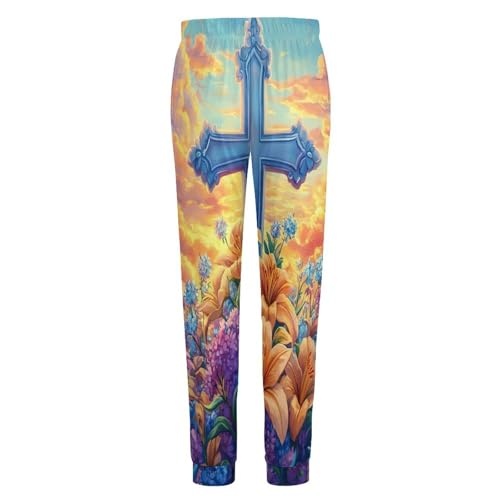 Crosss Flower Men's Pajamas Pants Lightweight Sleep Lounge Pant Pjs Bottoms Casual Sleepwear