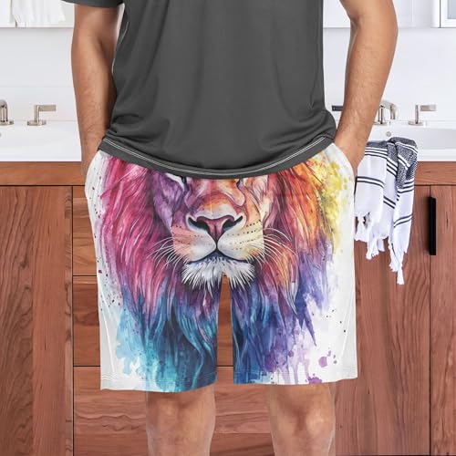 must-have ! Watercolor Lion Animal Print Pajama Men's Shorts Sport Gym Lounge Shorts Pj Sleepwear Casual Pants S