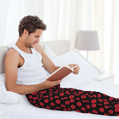 Sexy Red Lips Kiss Print Men'S Pajama Pants Soft Sleep Lounge Pants With Pockets- 4