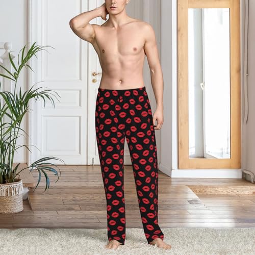 Sexy Red Lips Kiss Print Men'S Pajama Pants Soft Sleep Lounge Pants With Pockets- 1