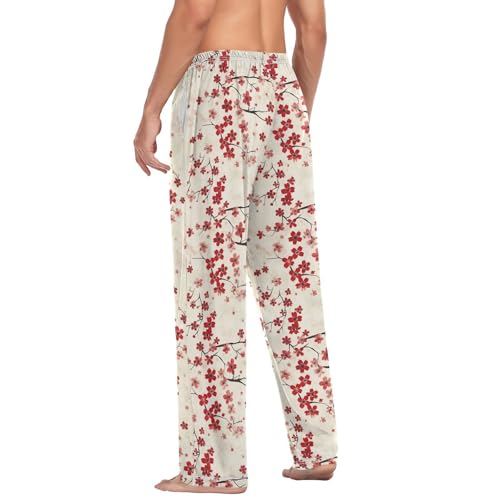 must-have ! ALAZA Retro Cherry Flowers Stars Men’s Pajama Pants plush Long Sleep Pants Lounge Pajama Bottoms with Pockets