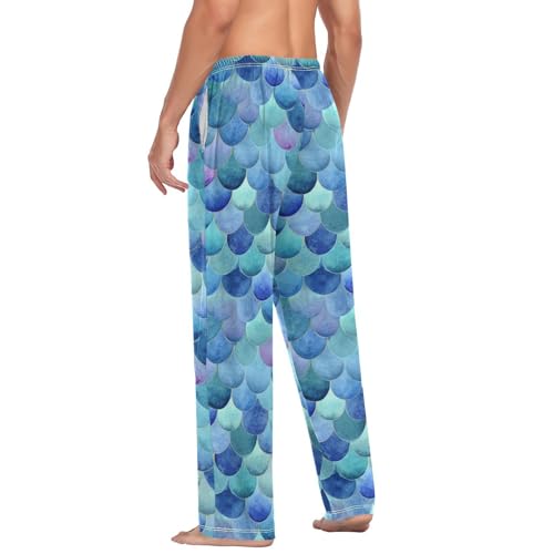 Vdsrup Men's Pajama Pants Blue Scales Pajama Pants for Men PJs Bottoms Drawstring Pockets Watercolor Sleep Lounge Pants S 4